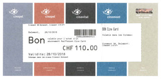 Die Gutscheine sind in unseren Kinosälen in Delémont (Cinémont 1/2/3/4) 2 Jahre gültig. Dies gilt auch für die anderen Kinos: